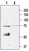 Western blot analysis of rat heart membranes:1. Anti-KCNJ5 (Kir3.4) Antibody (#APC-027), (1:200).