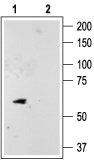 Western blot analysis of rat cerebellum lysate:1. Anti-KCNK10 (TREK-2) Antibody (#APC-055), (1:200).