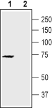 Western blot analysis of mouse brain lysate:1. Anti-KV1.4 (extracellular) Antibody (#APC-167), (1:200).