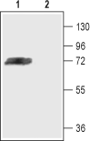 Western blot analysis of rat brain membranes:1. Anti-KV4.3 Antibody (#APC-017), (1:200).
