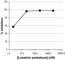 • Alomone Labs Losartan potassium inhibits the activation of AT1R expressed in CHO-K1-mt aequorin-Gα16 cells.