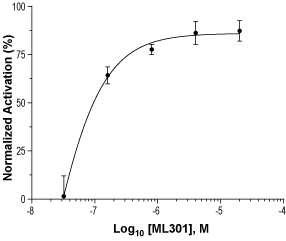 Activity ML-301 is a selective agonist of NTR1 receptors, shown to stimulate NTR1-mediated calcium mobilization with EC50 of 289 nM1-2.
