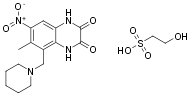 Chemical name 2-hydroxyethanesulfonic acid;6-methyl-7-nitro-5-(piperidin-1-ylmethyl)-1,4-dihydroquinoxaline-2,3-dione.