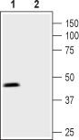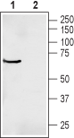 Western blot analysis of mouse kidney membranes:1. Anti-Prostaglandin E Receptor EP3 (PTGER3) Antibody (#APR-065), (1:200).