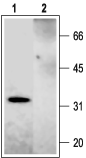 Western blot analysis of rat brain membranes:1. Anti-Syntaxin 2 Antibody (#ANR-008), (1:600).