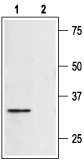Western blot anlysis of rat heart lysate:1. Anti-Syntaxin 4 Antibody (ANR-004), (1:400).