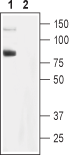 Western blot analysis of rat brain membranes:1. Guinea pig Anti-TRPC6 Antibody (#ACC-017-GP), (1:200).