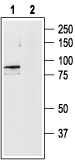 Western blot analysis of rat brain membranes:1. Guinea pig Anti-TRPV4 Antibody (#Acc-034-GP), (1:1500).