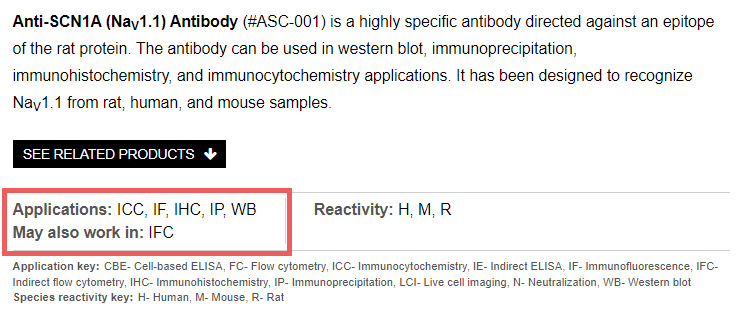 If you look at our datasheets, for example, you can see we’ve validated our Anti-SCN1A (NaV1.1) Antibody (#ASC-001) in ICC, IF, IHC, and WB. We also have good reason to believe it might work in IFC.
