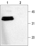 Figure 9. Western blot analysis of Syntaxin-1 in rat brain membranes using ANR-002.