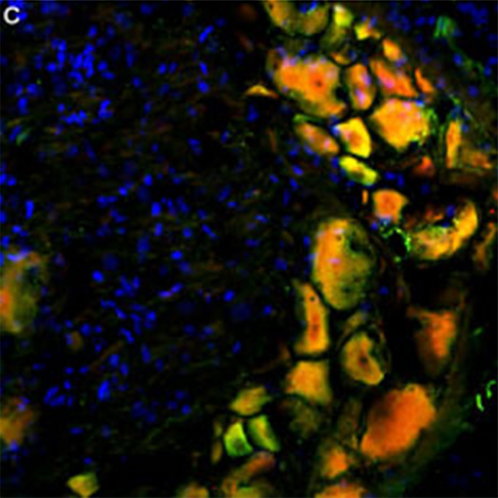 TRPV1 antibodies are designed to specifically bind to the TRPV1 receptor and are used in research as tools to selectively block or modulate the activity of TRPV1 receptors and influence downstream signaling pathways. TRPV1 antibodies can be utilized to investigate the functional role of TRPV1 in various biological processes, such as pain signaling, thermoregulation, and inflammation. Researchers use TRPV1 antibodies to visualize and study the localization and expression of TRPV1 receptors in tissues or to validate the presence of TRPV1 in experimental models. By using TRPV1 antibodies, researchers can identify the specific cells or regions expressing TRPV1, providing insights into the physiological or pathological roles of TRPV1 in different tissues and organs.