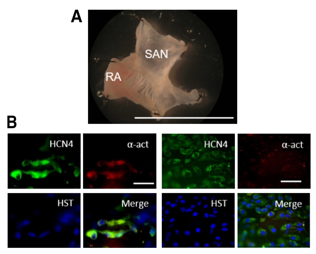 To ensure that they were looking at the right cells, the researchers used Alomone’s highly specific anti-HCN4 antibody as a functional SAN marker. This marker was chosen because the specialized pacemaker cells in the SAN express the hyperpolarization-activated cyclic nucleotide-gated channel 4 (HCN4), which enables the pacemaker current, known as the funny current (If).